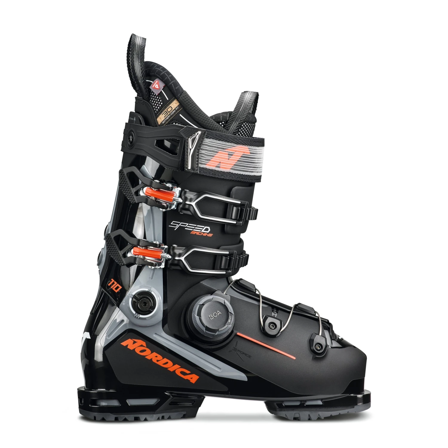 Elevate your experience—and your expectations—with Nordica’s Speedmachine 3 BOA® 110. Offering exceptional comfort and performance, this legendary all-mountain boot features the BOA® closure system for exceptional microadjustability. This closure system pairs perfectly with Nordica’s Tri Force technology by maximizing the transmission of energy. It also boosts power and control.