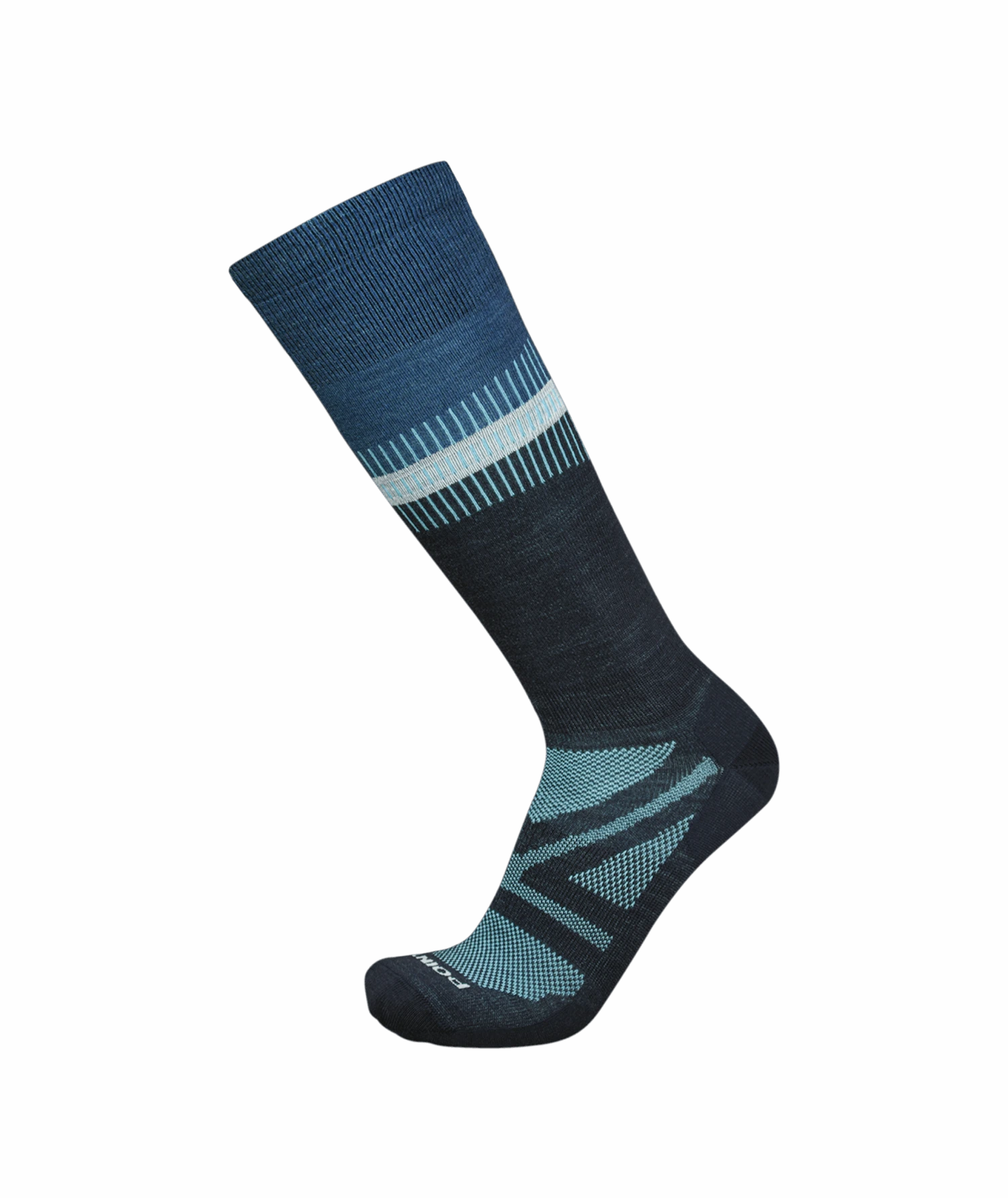 The Reflection is an ultra light, high performance over the calf ski and snowboard sock with no cushioning. This super light style is ideal for tight fitting boots or for warm days when no extra insulation is needed. A modern take on a stripe to bring style on and off the mountain.