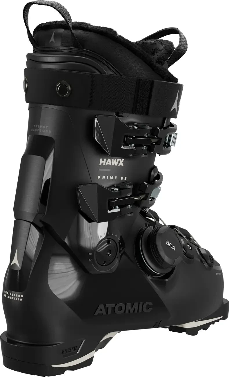 Women all-mountain skiers seeking a 100mm medium-volume alpine boot with a softer flex will appreciate the Atomic Hawx Prime 85 BOA W GW. BOA® Fit System. The lower shell wraps the foot, offering a precise fit that can be micro-adjusted in both directions.